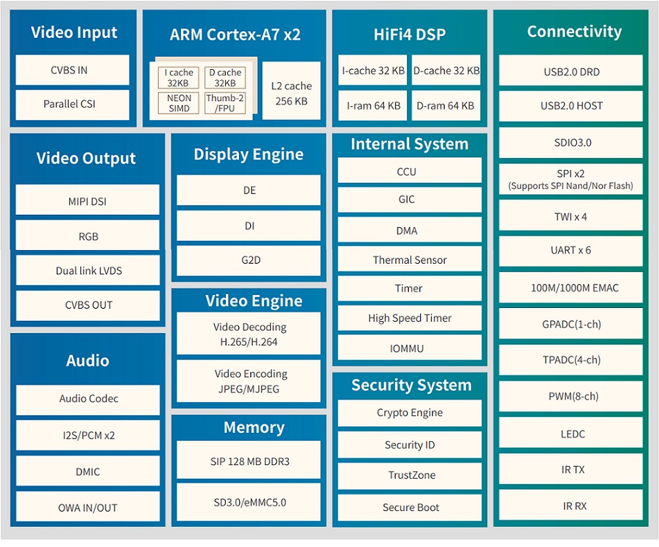 ●完美視頻體驗(yàn):集成了H.265/H.264 1080p@60fps解碼和SmartColor2.0后處理功能,T113-S3/S4為用戶提供一定的視頻娛樂體驗(yàn),讓每一幀充滿生動(dòng)和細(xì)節(jié)。
