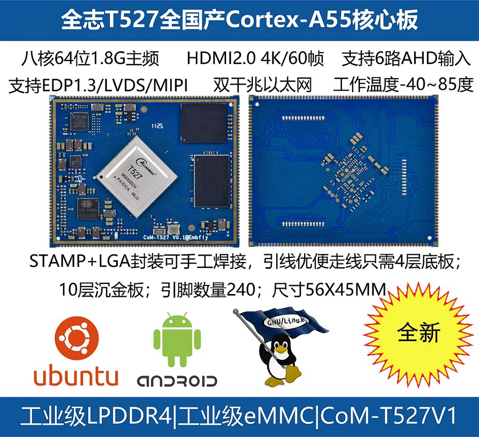 l 穩(wěn)定的操作系統(tǒng)的支持,可預(yù)裝Android13.0或者LINUX 5.15/Ubuntu 22.04