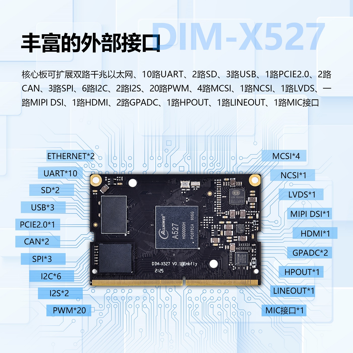 DIM-X527可提供雙千兆以太網(wǎng)接口;支持MIPI-CSI輸入(4+4lane、4+2+2lane、2+2+2+2lane);支持10路串口;支持HDMI2.0B/LVDS/MIPI DSI顯示;特定型號還支持2TOPS的NPU, 為圖像處理及畫質(zhì)增強等AI應(yīng)用提供了性能支持;它還還提供了3.3V I/O接口,可提供寬溫的工業(yè)組件,運行于條件惡劣的工業(yè)現(xiàn)場!該產(chǎn)品可應(yīng)用于智慧工業(yè)、行業(yè)智能、智能電網(wǎng)等領(lǐng)域,我司提供各種參考設(shè)計。