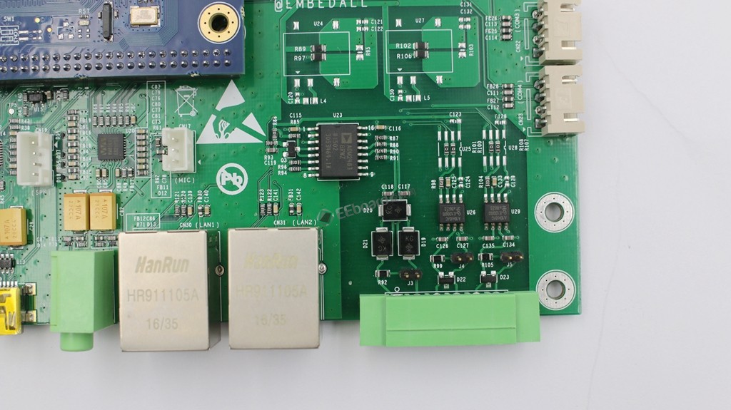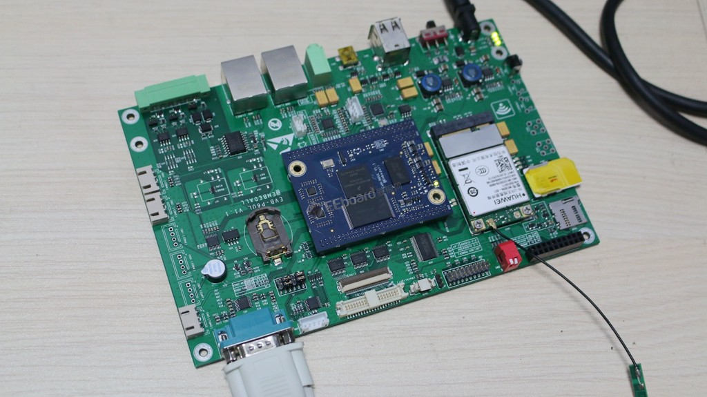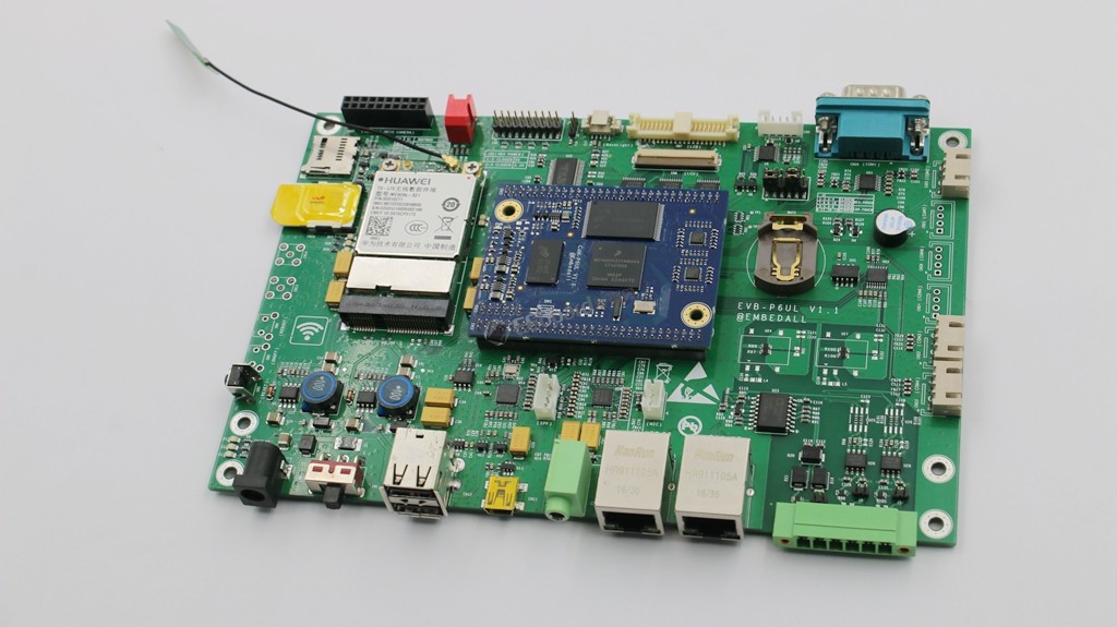 i.MX 6系列應用處理器是目前NXP主推的一個功能和性能可擴展的多核平臺,其中,基于高能效比的ARM Cortex-A7處理器的i.MX 6系列產(chǎn)品,因為具備較強的可擴展性、高性能和低功耗等特性,非常適合目前流行的物聯(lián)網(wǎng)、車載信息處理、家庭能源管理系統(tǒng)、工控領域等應用。 不久前愛板網(wǎng)評測師手上拿到了盈鵬飛基于ARM Cortex-A7處理器的NXP i.MX 6UL系列處理器的工控板EVB-P6UL,尤其板子適配了高速4G LTE模塊,可以說是專為高速物聯(lián)網(wǎng)應用定制的高性能工控產(chǎn)品。是不是很值得期待?一起來看下。 EVB-P6UL工控板 第一眼看到EVB-P6UL,會讓人覺得外設資源非常的豐富,到底還是有別于簡單的微控制器板,EVB-P6UL板卡采用了核心模塊CoM-P6UL以及底板的設計,通過雙列直插式排針接口連接,可靠性要比很多SODIMM接口穩(wěn)定,同時也便于工程師日后的擴展或者直接將核心板移植到現(xiàn)有的項目中去,非常方便。 EVB-P6UL工控板所有的器件基本都布局在板子正面,背面沒有任何器件。核心板與底板是采用插針是結構連接,相比一般的金手指接口,這種接口更加牢靠,穩(wěn)定。 CoM-P6UL核心板 首先來看下核心板,EVB-P6UL板卡采用了核心模塊CoM-P6UL以及底板的設計,所有的功能基本都是靠核心板引出來的,但是,即便是這樣,在承載這么多功能的前提下,板子的核心板實際上是非常小巧的,甚至不及我們?nèi)缃竦纳矸葑C大。 核心板具體尺寸為64mm*50mm,板子上只有為數(shù)不多的幾顆核心器件,包括i.MX6UL處理器、Nand Flash、SDRAM、以太網(wǎng)PHY等 核心板特性: CoM-P6UL核心板核心板上搭載的應用處理器具體型號為MCIMX6G2CVM05AA,采用了BGA封裝,這是NXP首款基于ARM Cortex-A7處理器的i.MX6UL系列芯片,擁有最大約為700MHz的主頻,處理器具體的硬件系統(tǒng)框圖如下所示。 i.MX6UL的特性如下所示: i.MX6UL的諸多特性中有幾點還是非常讓人值得期待的,ARM Cortex-A7就不用多說了,這是ARM推出的最具有能效比的32位處理器,市面上的應用產(chǎn)品本身就涵蓋了眾多領域,尤其對比Cortex-A9系列,在保持相同性能的前提下,可以降低50%左右的功耗,低功耗名副其實。 另外值得一提的是i.MX6UL的安全特性,集成了眾多的加密功能,其中有一項OTF DRAM加密,即能夠在總線上進行輸入輸出的動態(tài)加密,這就非常適合目前中國日益增長的電子銷售點(ePOS)業(yè)務、物聯(lián)網(wǎng)、車聯(lián)網(wǎng)等需要高度安全的應用。 另外,盈鵬飛核心板子上搭載的這顆處理器還算是i.MX6 UL系列中比較高端的一款,支持兩路以太網(wǎng)口、兩路CAN接口,并且支持圖形顯示,支持24bit-CSI以及24bit-LCD接口。 相應的,依托于應用處理器資源的豐富,核心板的接口資源同樣非常豐富,可以擴展出不同的應用,比如以下的幾組推薦方案。 EVB-P6UL底板 再來認識下底板,除去核心板,底板也基本上就是核心板外設的擴展,方便工程師用于評估核心板,底板的外設功能可以參考下圖。 具體來看下板子上的各個功能接口: 電源DC JACK座、電源開關、USB2.0 HOST、miniUSB接口 音頻接口、以太網(wǎng)接口、RS485、CAN接口 串口 RTC電池座 調(diào)試串口、觸摸接口、LCD接口 背光燈接口、LVDS接口、攝像頭接口、boot啟動開關、GPIO擴展口 SIM卡座、華為4G模塊,型號ME909s-821。 上電啟動 盈鵬飛EVB-P6UL工控板出廠已經(jīng)內(nèi)置了linux系統(tǒng),而且針對此次的華為4G 模塊,已經(jīng)在系統(tǒng)中添加過相應的驅動,針對4G的高速率要求,在Linux系統(tǒng)中是通過USB CDC實現(xiàn)無線模塊的快速連接網(wǎng)絡,通信功能。 EVB-P6UL可以說是一款開箱即可使用的板子,接上調(diào)試串口,我們就可以查看到系統(tǒng)啟動日志。 i.MX6 UL處理器、256MB DRAM、256MB NAND FLASH,不過,看到主頻只有396MHz,貌似做了限頻。 接下來看下EVB-P6UL通過4G模塊聯(lián)網(wǎng)的情況。 因為內(nèi)置的Linux系統(tǒng)已經(jīng)添加華為ME909s-821 4G模塊的驅動,所以我們可以直接拿來使用。盈鵬飛也提供了驅動修改以及配置內(nèi)核的上手教程,這部分內(nèi)容在本文中就不做說明,有意向的可以聯(lián)系盈鵬飛的技術支持獲取。 驅動正常的情況下可以查看到系統(tǒng)加載的系統(tǒng),并且在/dev目錄下創(chuàng)建ttyUSB0~ttyUSB4 5個設備節(jié)點,如下所示: 查看USB串口驅動是否正確加載 可以看到驅動正常加載的情況下創(chuàng)建的5個設備節(jié)點 5個設備節(jié)點的端口的映射關系如下圖所示 其中,MODEM端口就是用于撥號上網(wǎng)、DIAG端口用于調(diào)試診斷、PCUI用于AT指令通信等。 目前市面上很多4G模塊都支持多種協(xié)議,如無特殊需求,在設計的時候選擇一種驅動集成簡便的協(xié)議設計較為省時省力,這可以根據(jù)廠商提供的技術資料、驅動源碼等選擇。此次的ME909s-821 4G模塊是通過NDIS協(xié)議連接4G網(wǎng)絡的。 一切準備就緒后我們就可以用4G模塊撥號上網(wǎng)。使用NDIS協(xié)議,發(fā)送AT指令連接4G網(wǎng)絡,輸入 dhcpcd 指令獲取IP。 如下圖所示,此時再通過ifconfig可以查看到4G模塊usb0的聯(lián)網(wǎng)信息。 ping愛板網(wǎng),可以看到正常工作,聯(lián)網(wǎng)OK,只不過延遲貌似有點高。 除了4G撥號上網(wǎng)功能,我們也可以通過其它端口測試相應的功能,比如連接AT命令端口。 更多的內(nèi)容本文就不再一一演示,值得一提的是,盈鵬飛除了適配華為ME909s-821 4G
